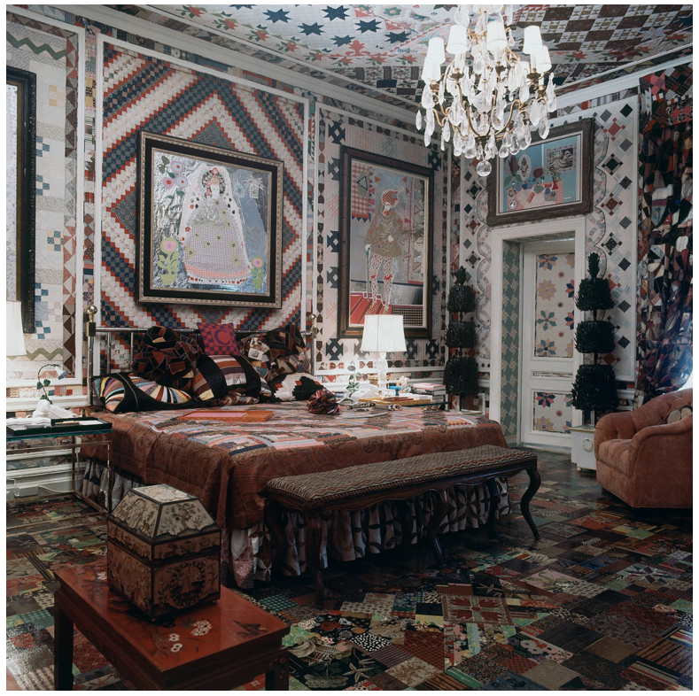 "The one I remember most was a bedroom my mother covered entirely in patchwork quilts: the walls, the ceiling, the furniture, she’d even glued quilts to the floor and had them coated with polyurethane. It was like being inside a collage. I’ve never seen anything like it since."